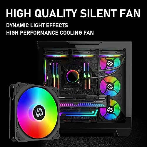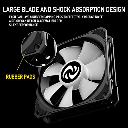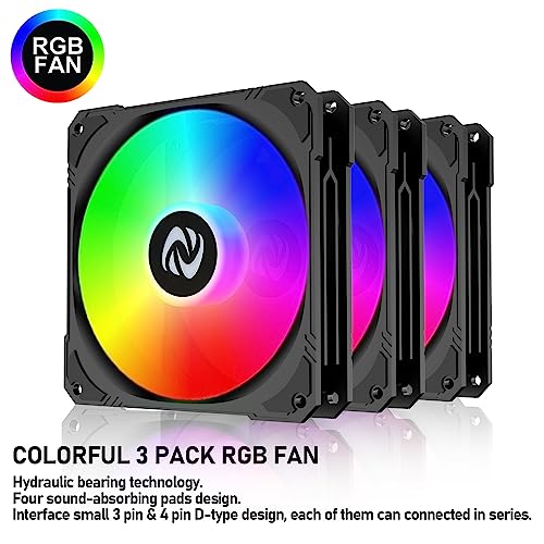 120mm Case Fan 3 Pack RGB Case Fans, Silent Version High Airflow PC Fans, Hydraulic Bearing – Low Noise RGB Fans with 12v 3 pin and molex 4 pin PSU Plug Computer Fans for PC Case
