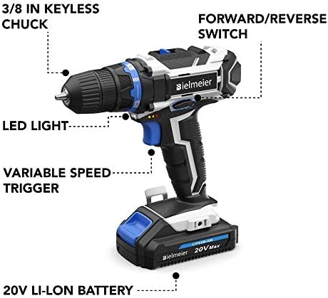 Bielmeier Cordless Drill Set, 20V MAX Lithium-Ion Power Drill Cordless, Electric Drill with Variable Speed, LED and 58pcs Drill Bits (BCDK-58)