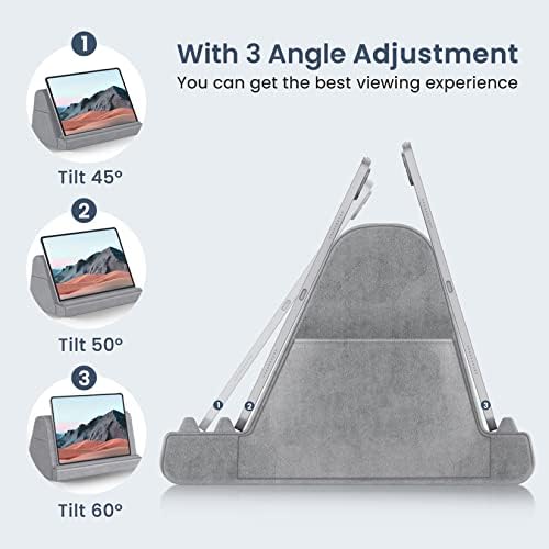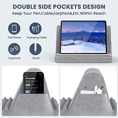 FANGOR Tablet Pillow Stand, Soft Bed Pillow Holder for 4.7-12.9 inch Kindle, iPad, Phone, Multi-Angle Neck Pillow Holder with Side Pocket, Suitable for Reading in Bed, Lap & Desk