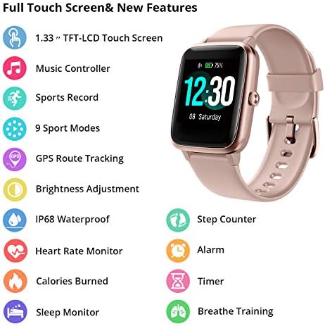 Fitpolo Smart Watch for Android Phones Compatible with iPhone IP68 Swimming Waterproof Smartwatch Fitness Tracker Fitness Watch Heart Rate Monitor Smart Watches for Women (Pink)