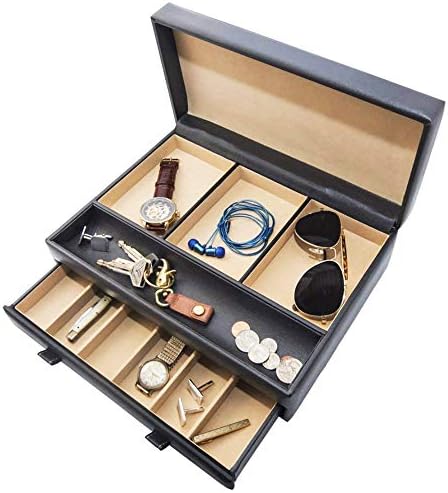 Stock Your Home Watch Box with Valet Drawer for Dresser – Mens Jewelry Box with Multiple Compartments – Jewelry Case Display Organizer for Mens Jewelry Watches, Men’s Storage Boxes Holder