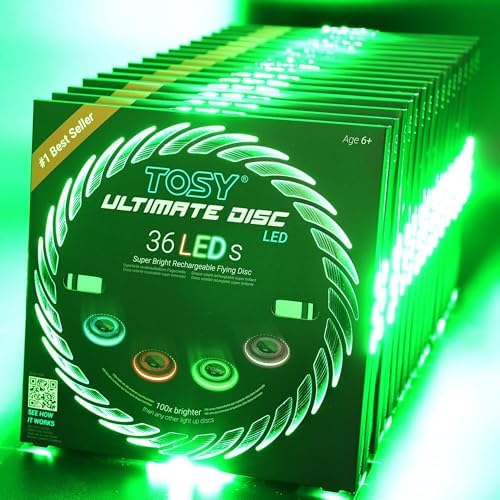 TOSY Flying Disc – 16 Million Color RGB or 36 or 360 LEDs, Extremely Bright, Smart Modes, Auto Light Up, Rechargeable, Cool Fun Christmas, Birthday & Camping Gift for Men/Boys/Teens/Kids, 175g frisbee