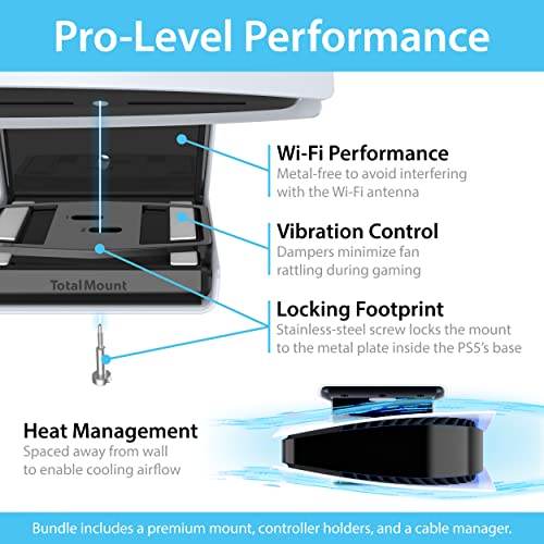 TotalMount Wall Mount for PS5 – Mounts Playstation 5 on a Wall by Your TV (PS5 Wall Mount and Three Controller Holders)