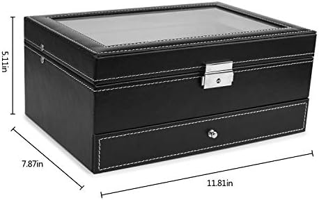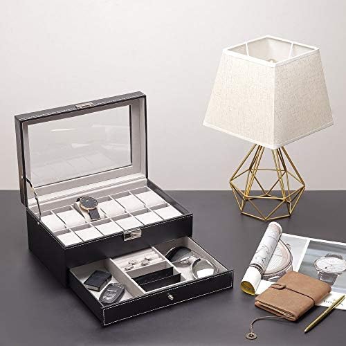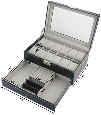 Watch Box, 12 Slots PU Leather Case Organizer with Jewelry Drawer for Storage and Display